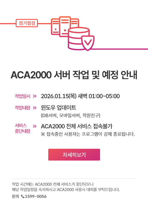 ACA2000은 단순히 정보만을 입력하는 툴이 아니에요. 학원을 오픈하는 시점부터 중, 대형 학원이 되기까지의 운영 시스템구축을 도와드리는 비즈니스 파트너에요. 제대로 된 회사를 선택하지 않아서 시스템을 자주 바꾸게 되면 학부모님들께도 신뢰도가 떨어지지 않을까요? 지금부터 ACA2000과 제대로 된 시스템을 만들어보세요.